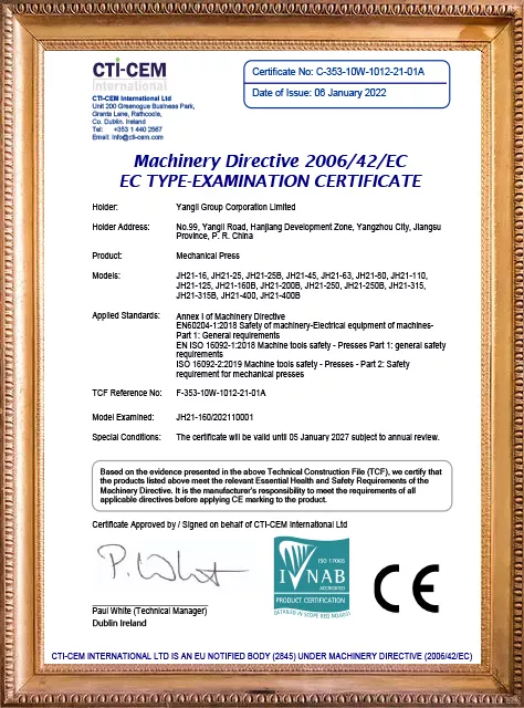 CERTIFICADOS DE PRENSAS PARA ESTAMPADO